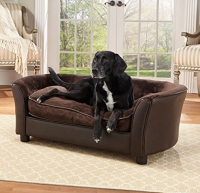 Dogs love jumping up on the couch to spend some snuggle time with their humans, but not all dog owners appreciate having their furniture covered in dog hair. If you prefer not to let your dog up on the couch but you still want him to have a comfy space to sleep, why not give him a couch of his own with the Enchanted Home Pet Panache Dog Bed. This dog bed features a fully upholstered design with durable furniture-grade construction. It has 2-inch legs to elevate the bed off the ground to protect your dog from drafts and it is padded with a high-loft, milled foam cushion. This particular model fits pets up to 50 pounds, but it does come in other sizes for larger or smaller dogs. The cushion is removable and washable for your convenience and the bed’s luxury design will fit in well with your home décor.